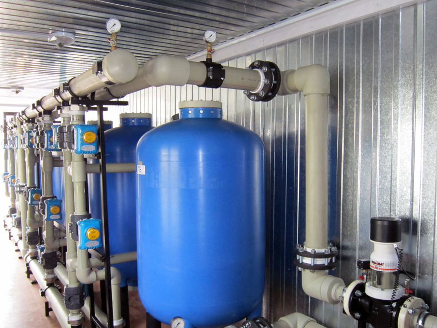 Применяемые технологии: осветление, фильтрация на сетчатом фильтре (рейтинг фильтрации – 80 мкм), тонкая фильтрация на засыпных фильтрах (рейтинг фильтрации – 5 мкм), сорбционная доочистка на активированном угле, обеззараживание раствором ГПХН, полученным электролизом, умягчение воды, поступающей к электролизеру.