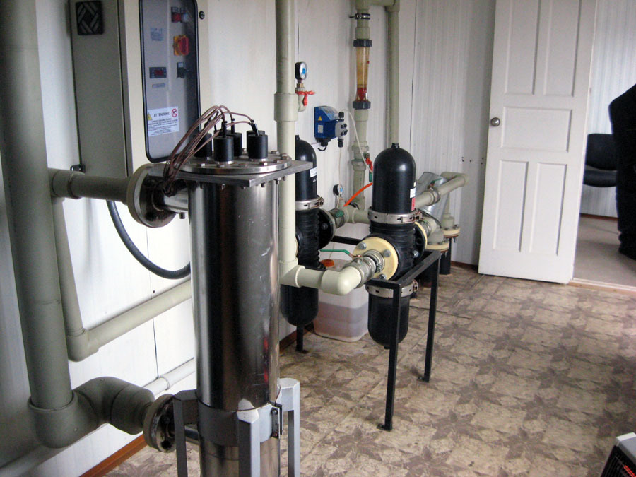 Применяемые технологии: фильтрация на дисковых фильтрах (рейтинг фильтрации – 55 мкм), тонкая фильтрация на засыпных фильтрах (рейтинг фильтрации – 5 мкм), обеззараживание – ультрафиолетовая бактерицидная установка.