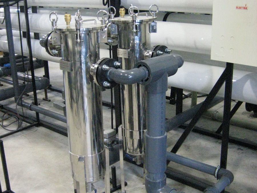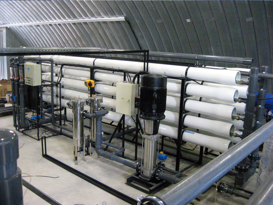 Применяемые технологии: фильтрация на сетчатых фильтрах (рейтинг фильтрации – 50…80 мкм), тонкая фильтрация на мешочных фильтрах (рейтинг фильтрации – 5мкм), опреснение – 2 установки нанофильтрационных “Булак МТ – 50”, обеззараживание раствором ГПХН, полученным электролизом.