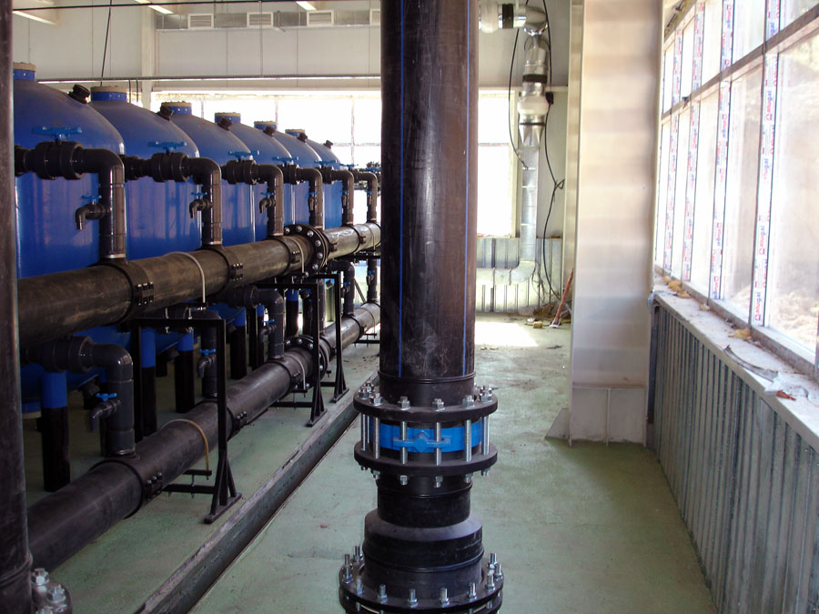 Применяемые технологии: отделение механических включений на гидроциклонах ,осветление, тонкая фильтрация на засыпных фильтрах (рейтинг фильтрации – 5 мкм), обеззараживание раствором ГПХН, полученным электролизом.